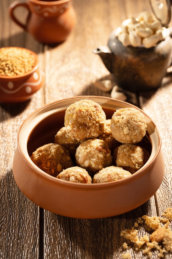 At JaapaLaddu, we honor the age-old traditions of postpartum care by offering meticulously crafted laddus designed to support new mothers during their recovery journey. Our laddus are made from natural ingredients known for their health benefits, ensuring both taste and nutrition in every bite.